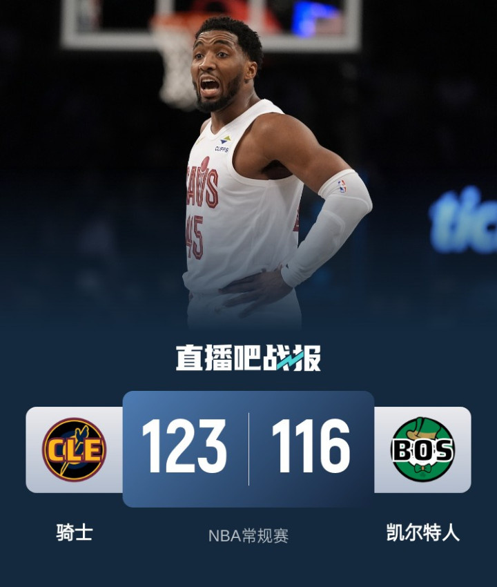 开场后凯尔特人外线手感火热连中三分,他们5分钟时间轰出一波25-3的攻势早早建立领先,随后加兰连续突破得手,杰罗姆替补登场后带领轮换阵容开始追分。第二节骑士的轮换阵容继续追分,他们上来掀起反扑追到只差2分,怀特两记三分止血,塔图姆和布朗也轮番拿分,凯尔特人在半场结束时再度将分差拉大到10分。易边再战,虽然米切尔上演强势暴扣,但是塔图姆和布朗状态依旧神勇,他们联手拿分帮助凯尔特人再次拉开比分,但随后米切尔暴走个人独自轰出10-0的攻势追到只差1分。末节决战骑士依旧势头凶猛,莫布里命中三分帮助骑士反超比分,虽然塔图姆及时站出来,但米切尔毫不示弱帮助骑士建立领先,凯尔特人后继乏力,最终骑士123-116大逆转凯尔特人豪取9连胜,凯尔特人遭遇2连败。